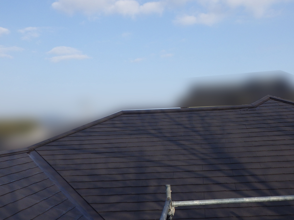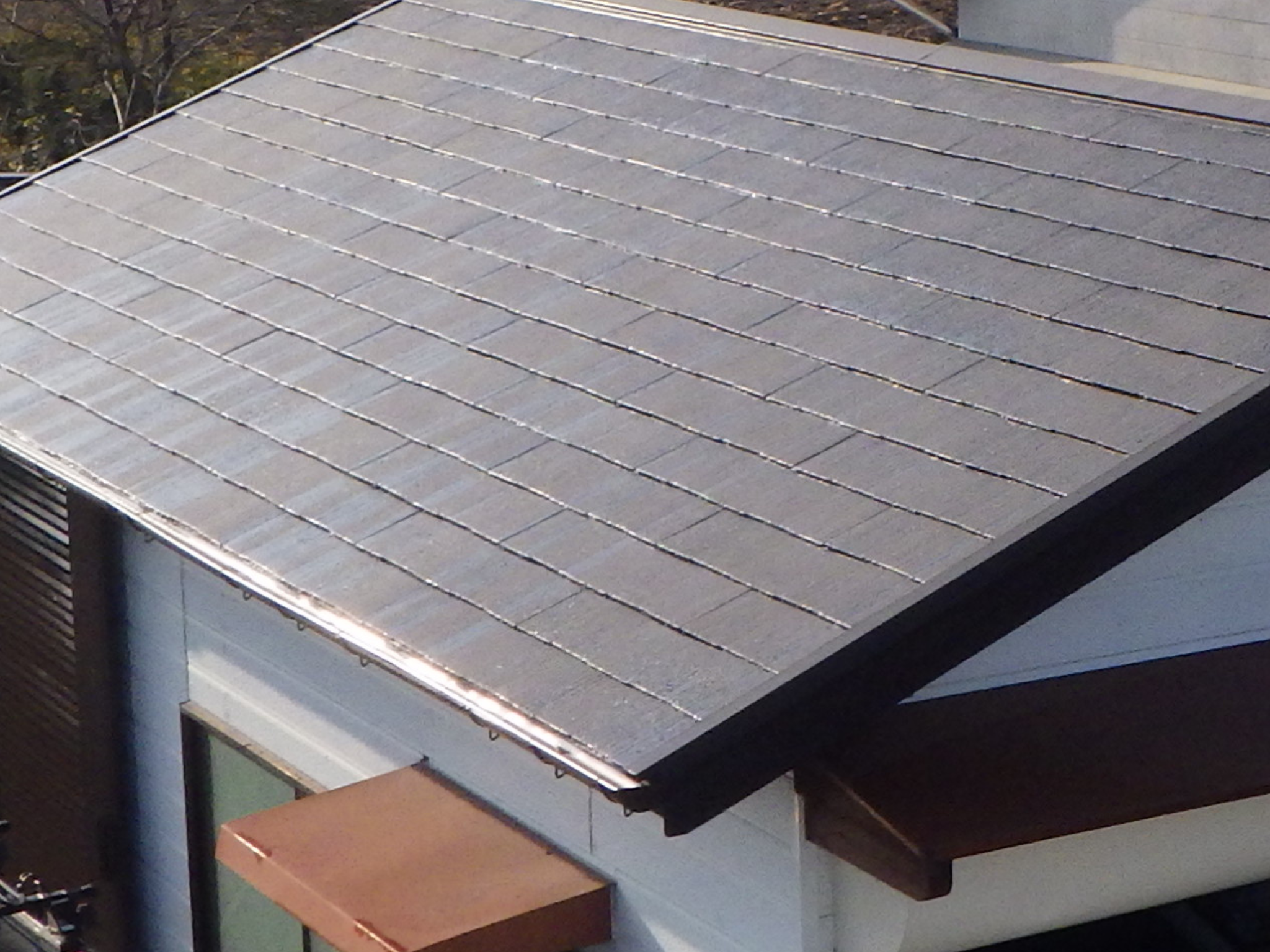 塗装後は、色ツヤがよみがえり、屋根全体が引き締まった印象に。