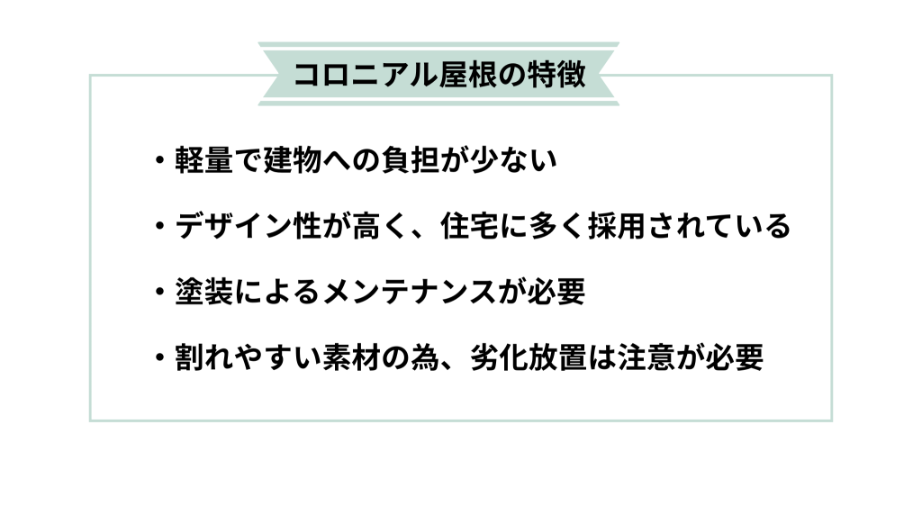 コロニアル屋根は軽量で耐震性に優れているというメリットがありますが、
