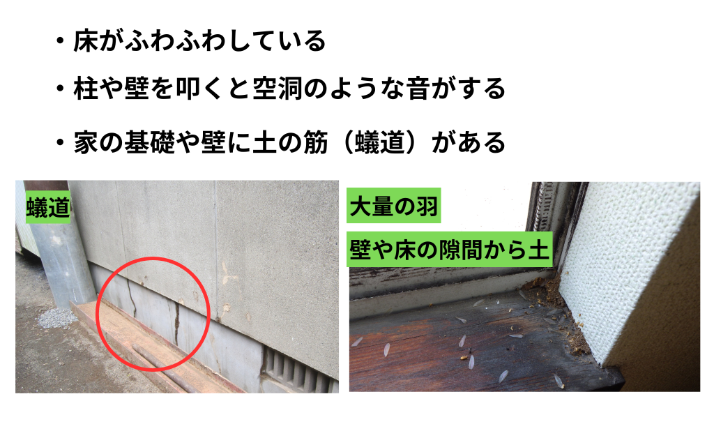 このような症状がある場合は、シロアリ被害が進んでいる可能性があります。